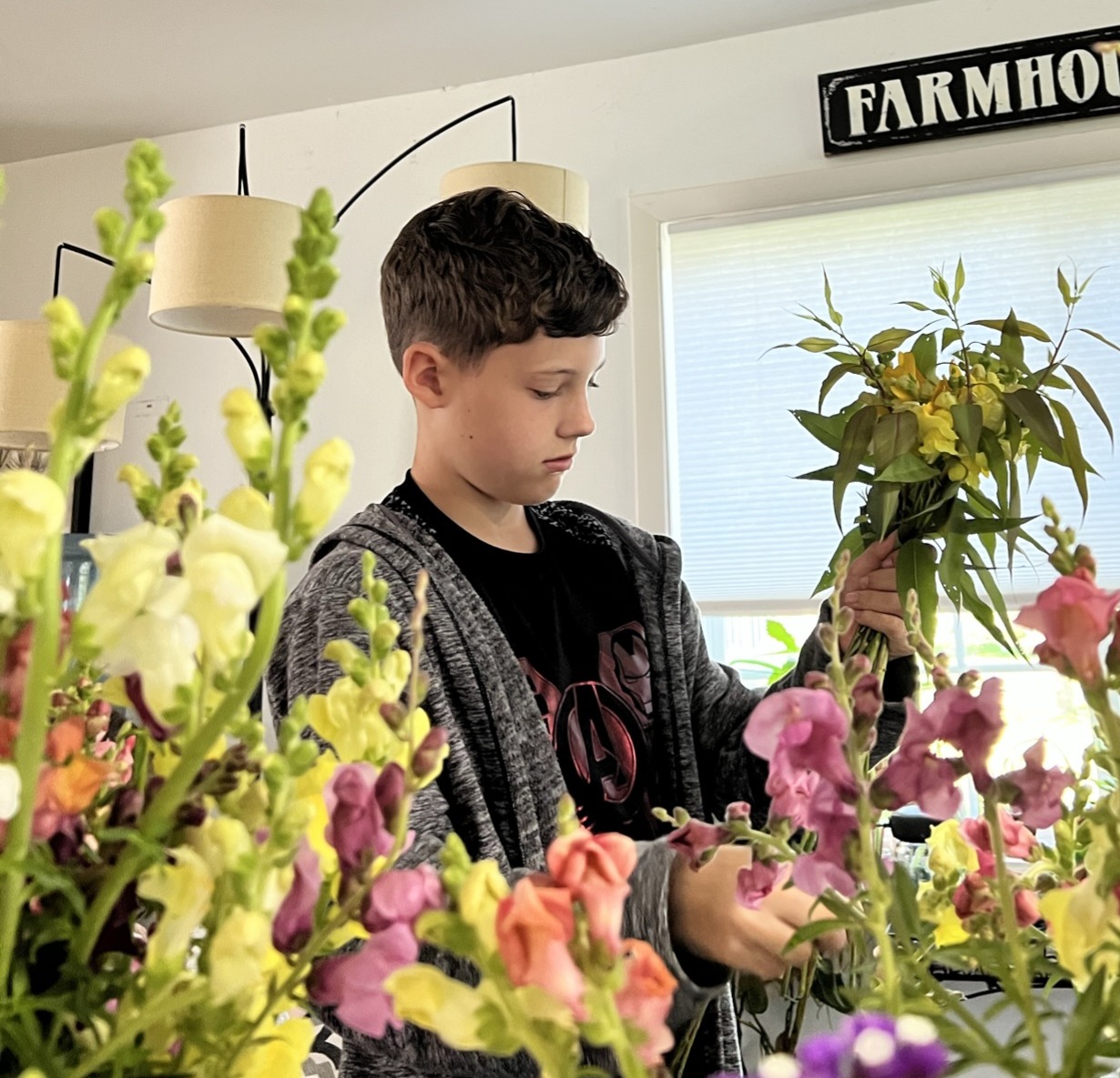 Mia brings beauty to our farm through her thoughtful designs and arrangements, celebrating nature’s gifts.